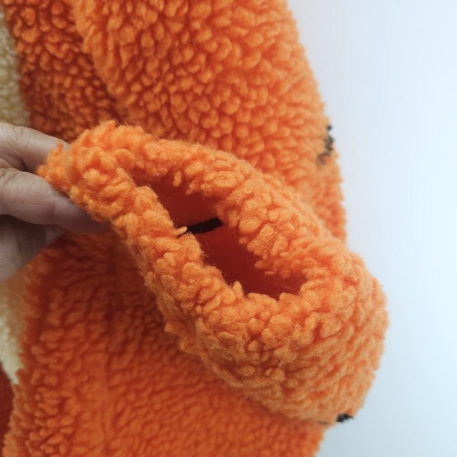 Embroidered "Tigger" on chest, plush striped orange fleece, soft sherpa feel