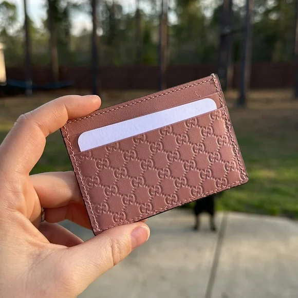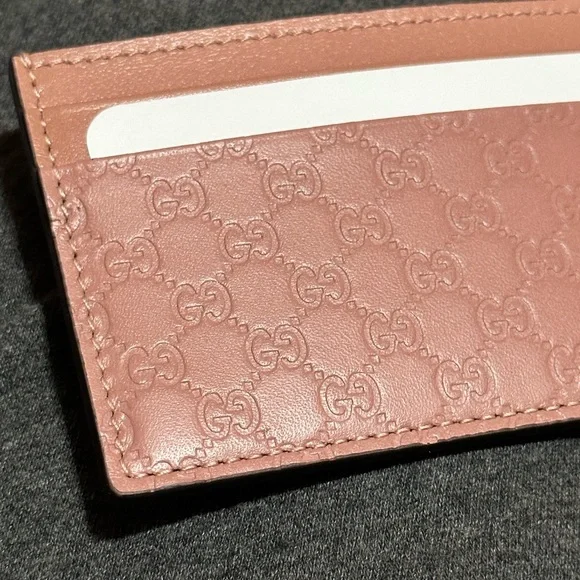 Brand new!Gucci Card HolderMicro GuccissimaPink with black interiorTwo car slots on each side with a center slotMeasures approximately 4”x3.75”Box and dustbag aren’t included-out of stock Disclaimer: Please see all photos as they are part of the description. All sales are final. Please know what you were bidding on/purchasing.All items are video recorded before, during, and after the packaging/shipping process.